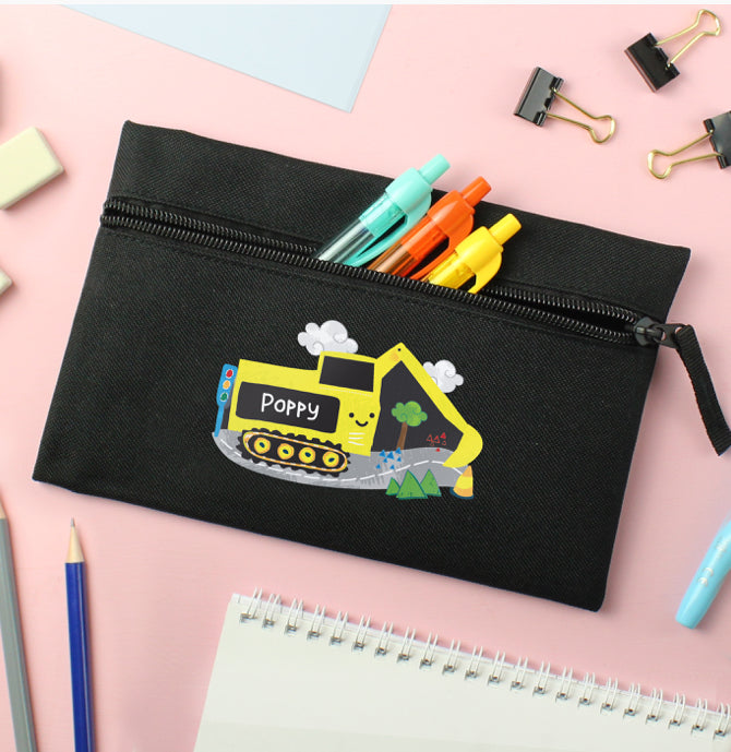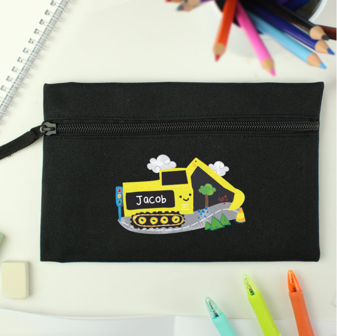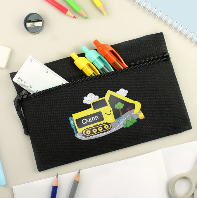 Personalised Digger Black Pencil Case