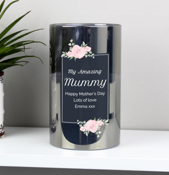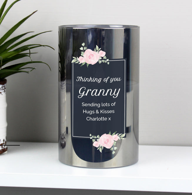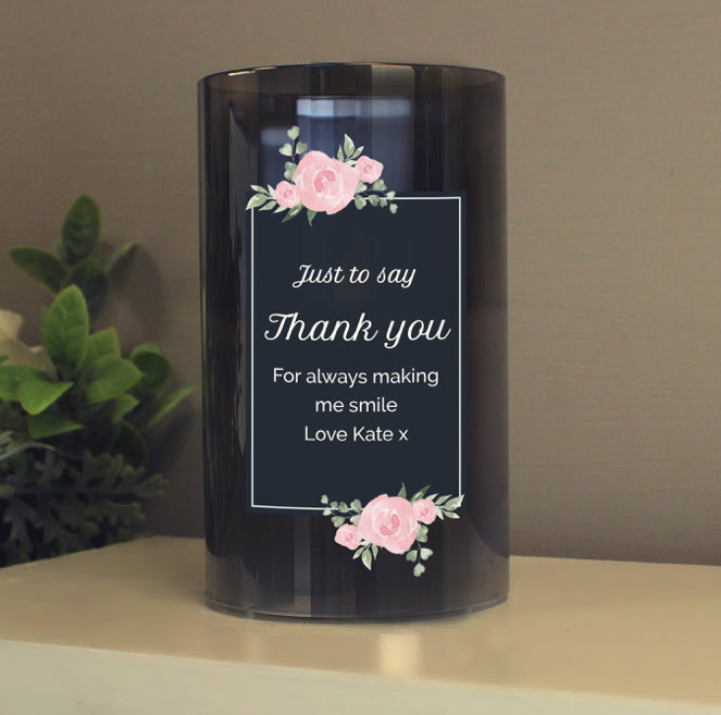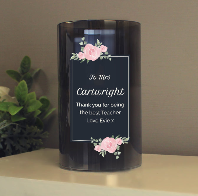Personalised Floral Smoked Glass LED Candle