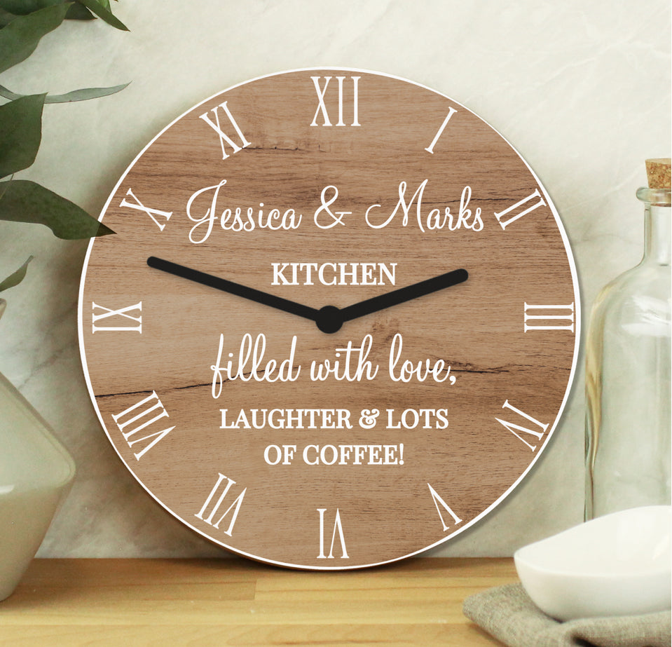 You can personalise this clock with up to 5 lines of text each line has up to 25 characters available.