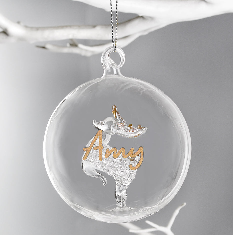 Personalise this glass bauble with a name up to 11 characters. Please add your personalisation to notes when at checkout
