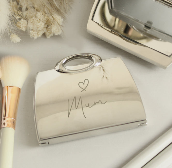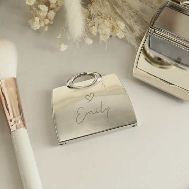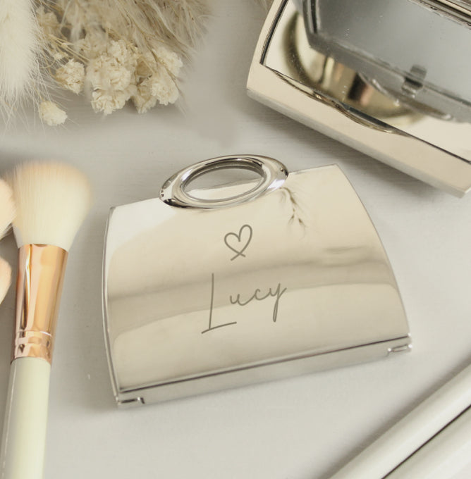 This personalised handbag shaped compact mirror is a stunning gift that is well suited for any occasion.