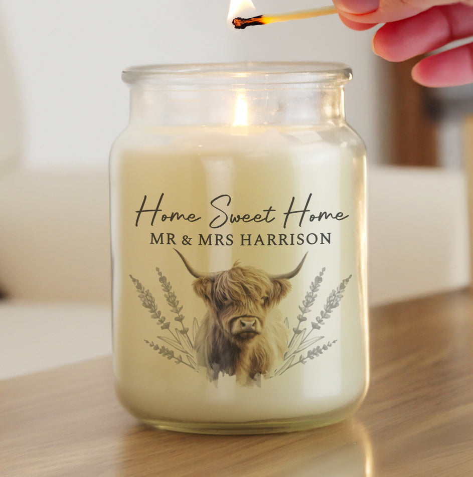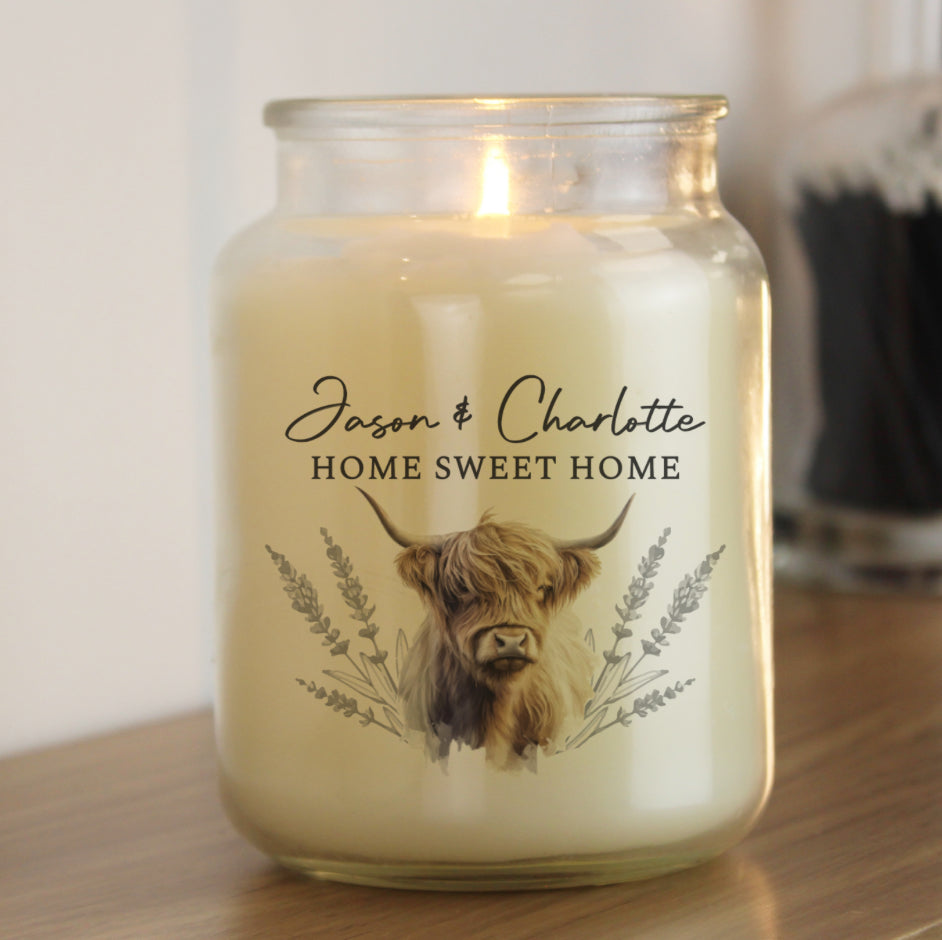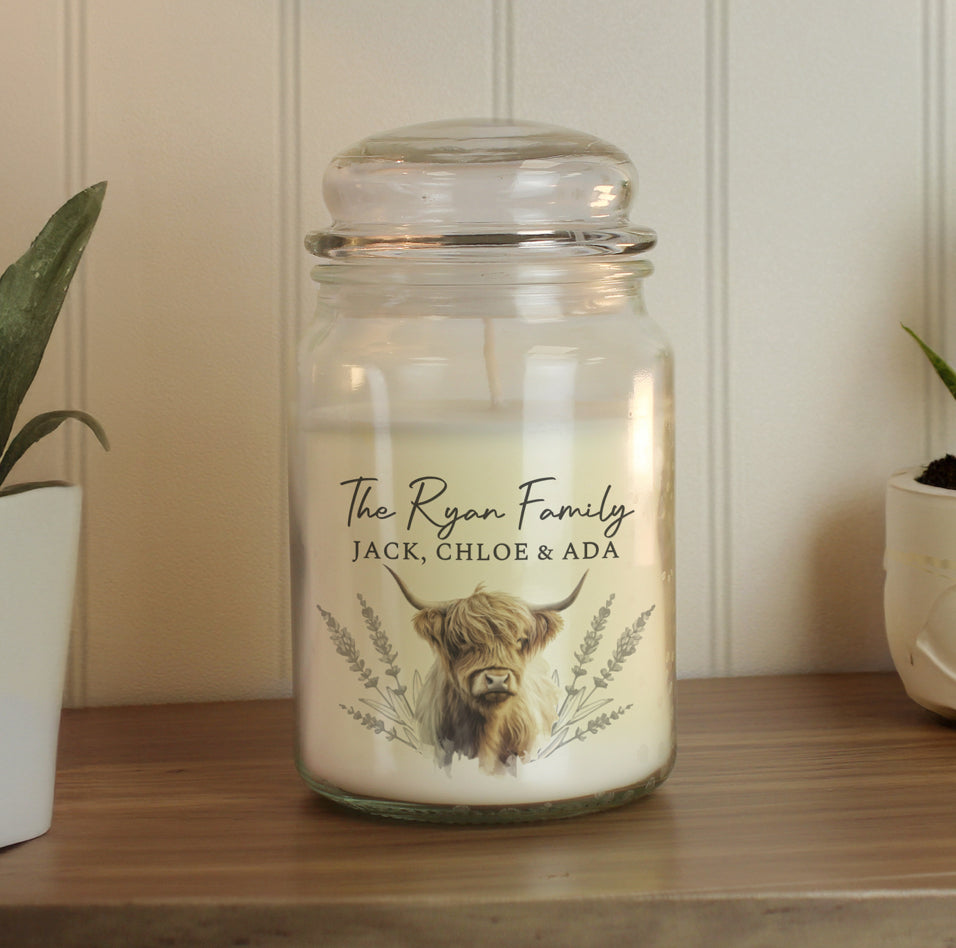 Our Personalised Highland Cow Large Scented Jar Candle is sure to hit the mark!