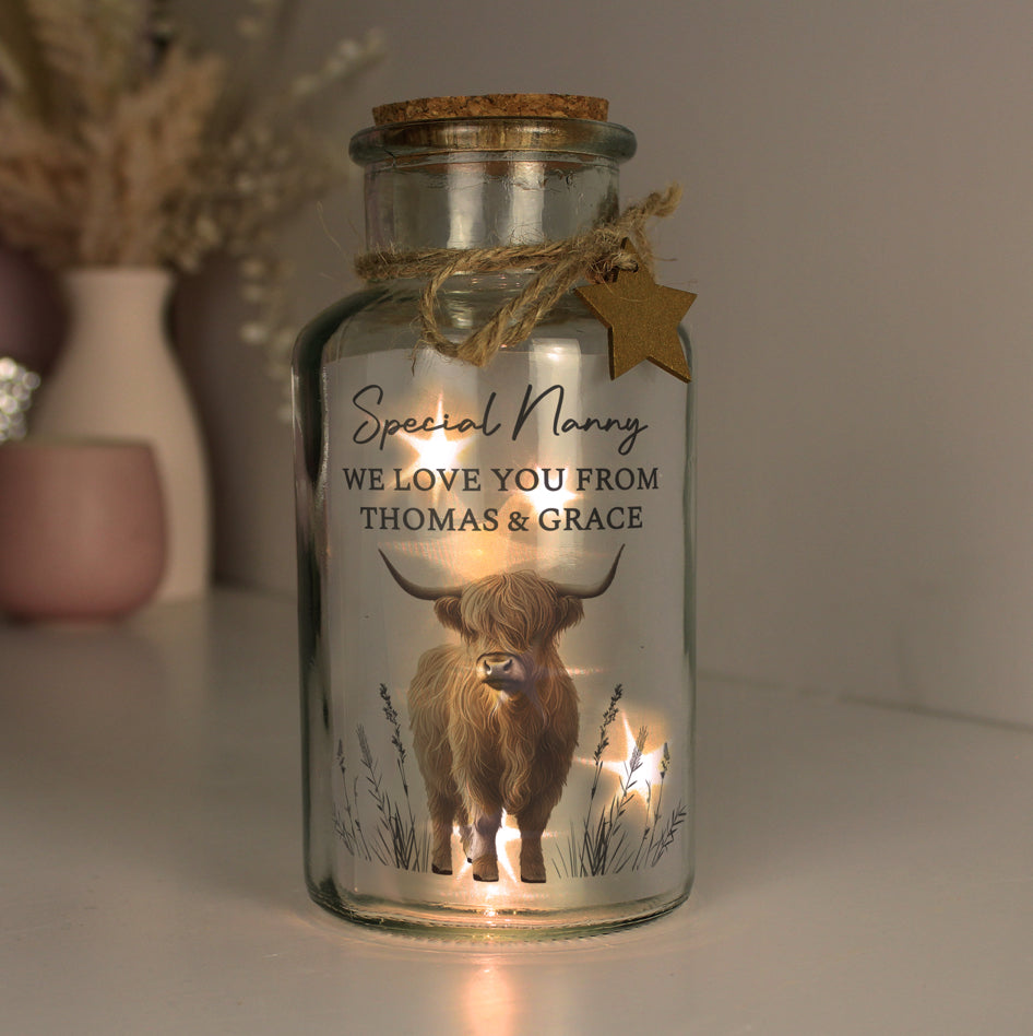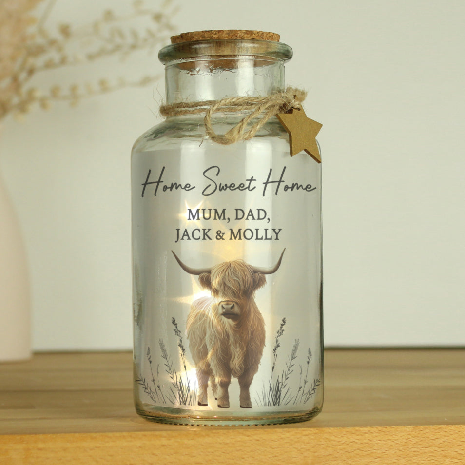 Featuring a charming Highland cow design with your message above, it's a heartfelt way to add a warm, personal touch to any space.