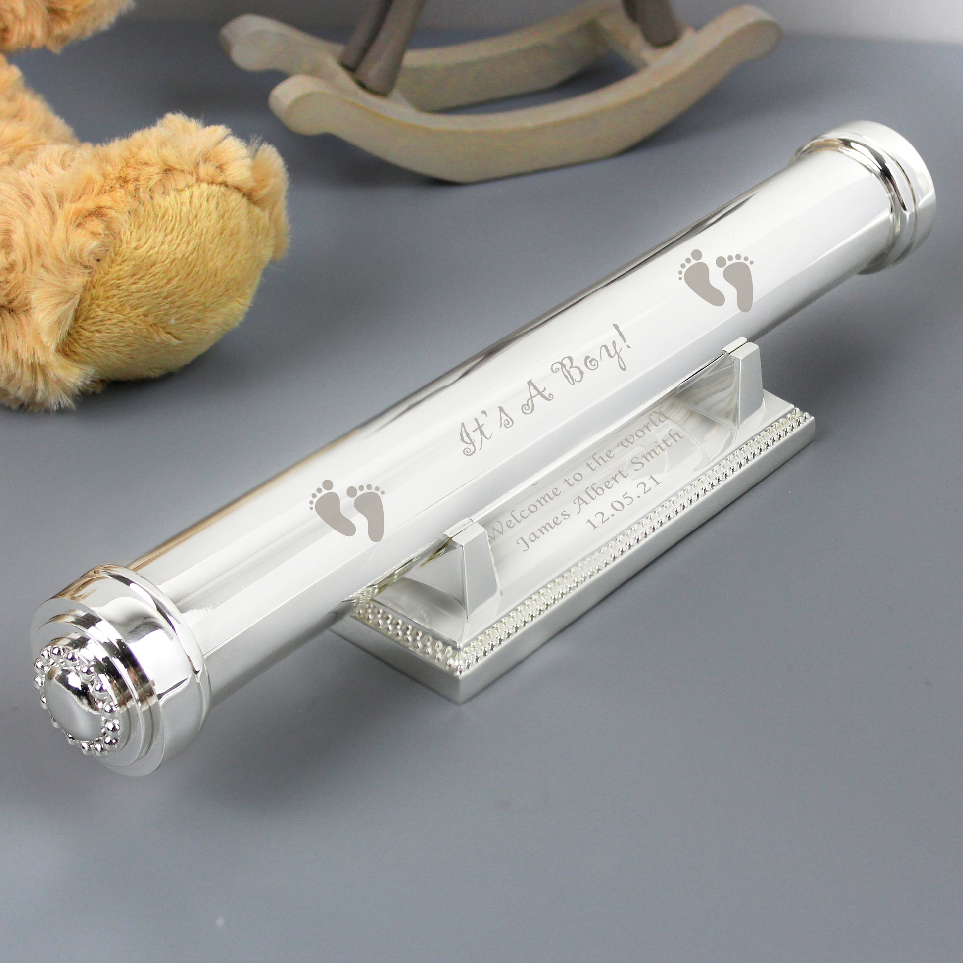 Personalised the stand with any message over 4 lines and up to 25 characters per line. The wording 'It's a Boy' featured on the holder is standard text.