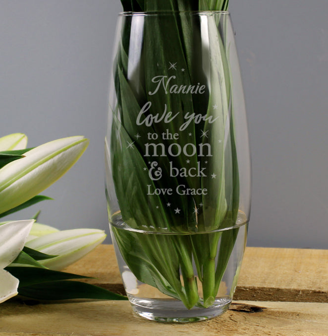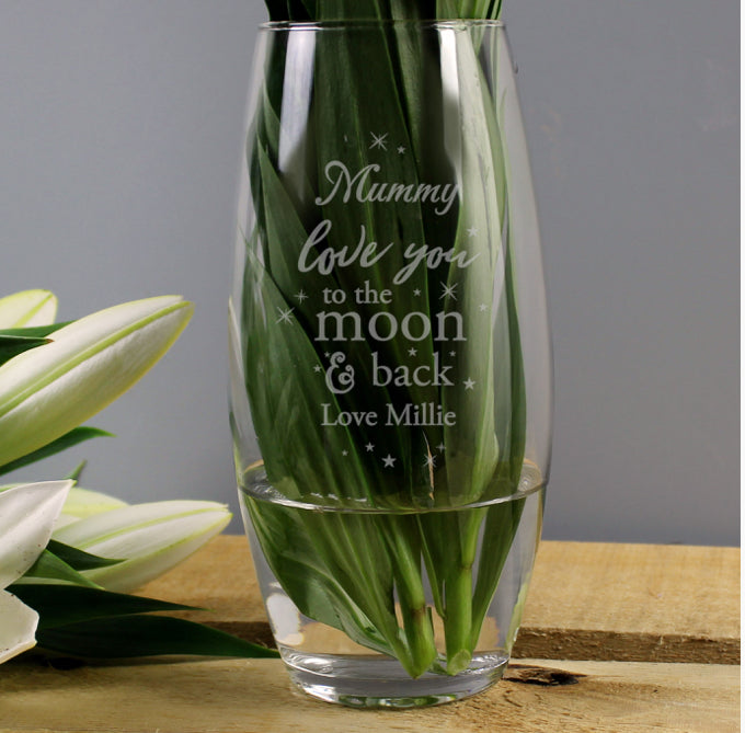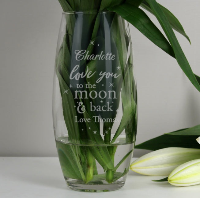 This vase can be personalised with a message over 2 lines of text with up to 15 characters per line.
