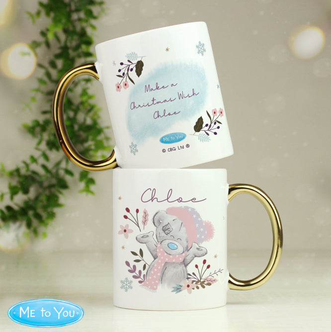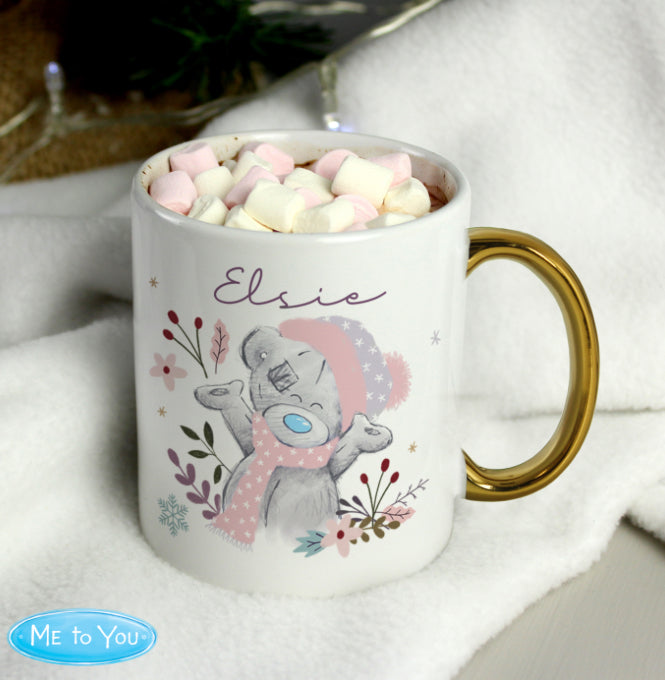 Indulge in the warmth of the season with our Personalised Me to You Cosy Winter Gold Handled Mug, a perfect blend of charm and practicality.