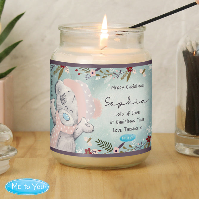 Immerse yourself in the warm embrace of the Personalised Me to You Cosy Winter Large Candle Jar, where every flicker of the flame whispers tales of comfort and charm.