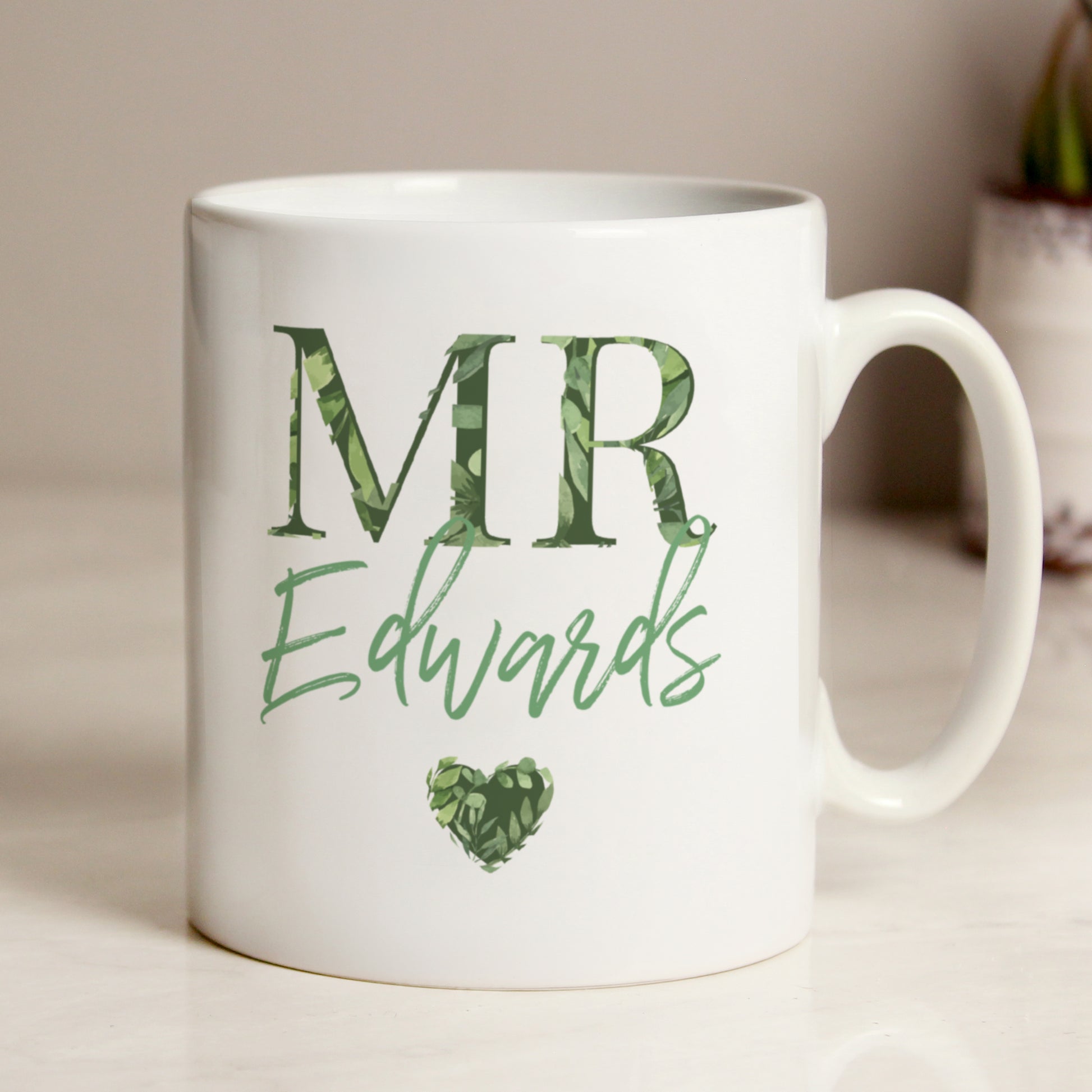 This cute botanical Mr mug is the perfect gift for any newlywed Groom!