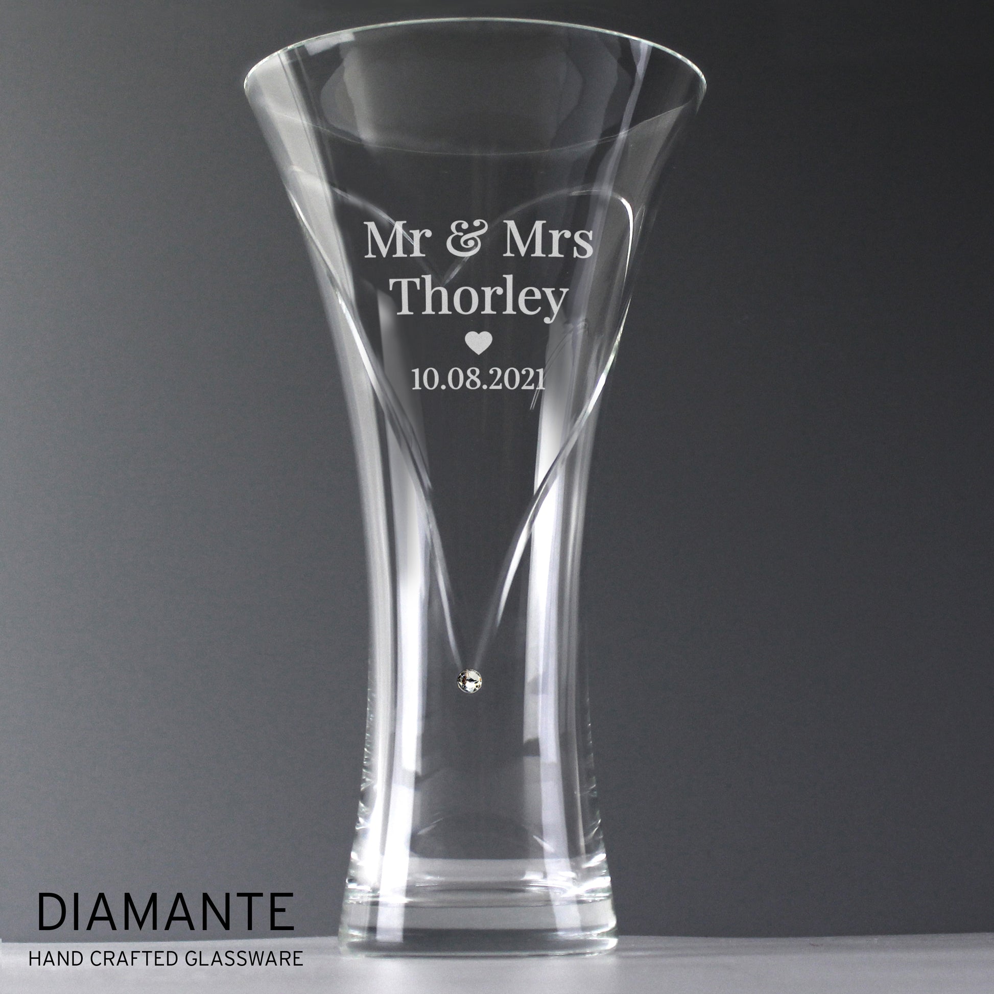 Personalised Mr & Mrs Large Hand Cut Diamante Heart Vase