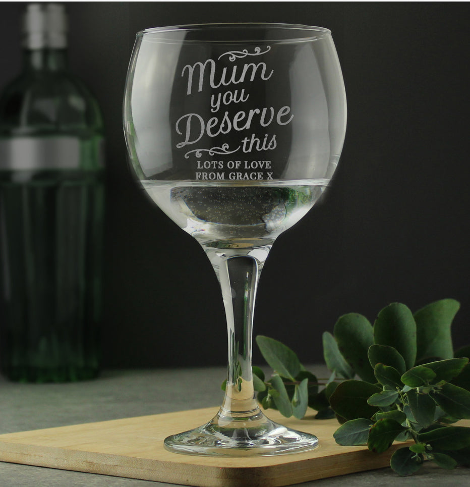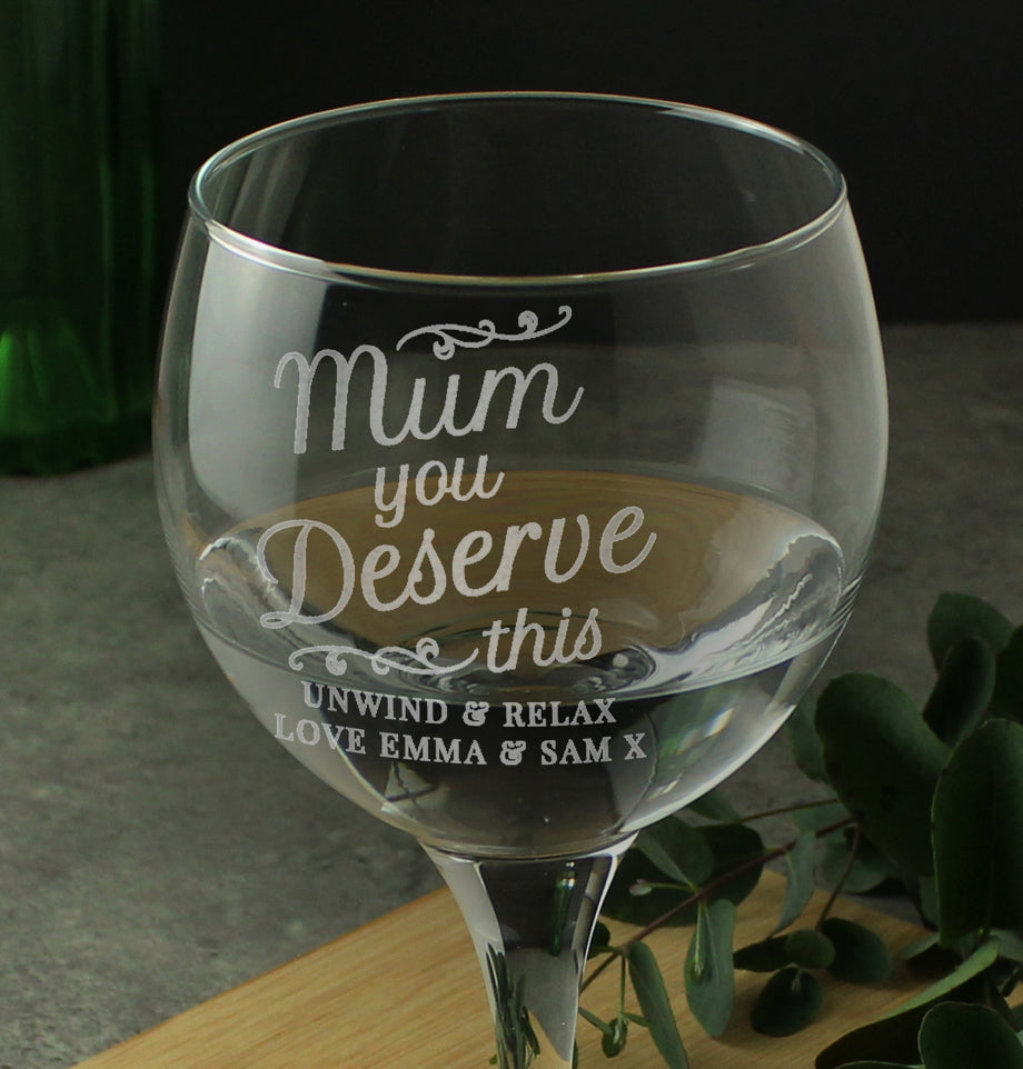 Personalised 'Mum You Deserve This' Gin Balloon Glass