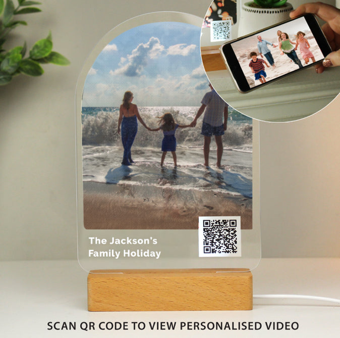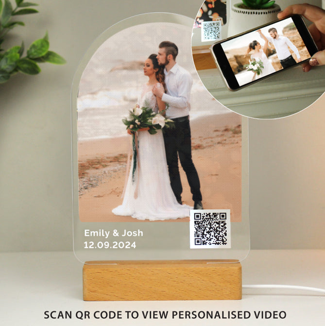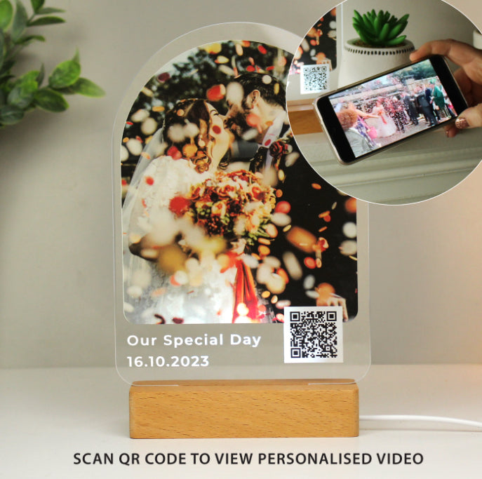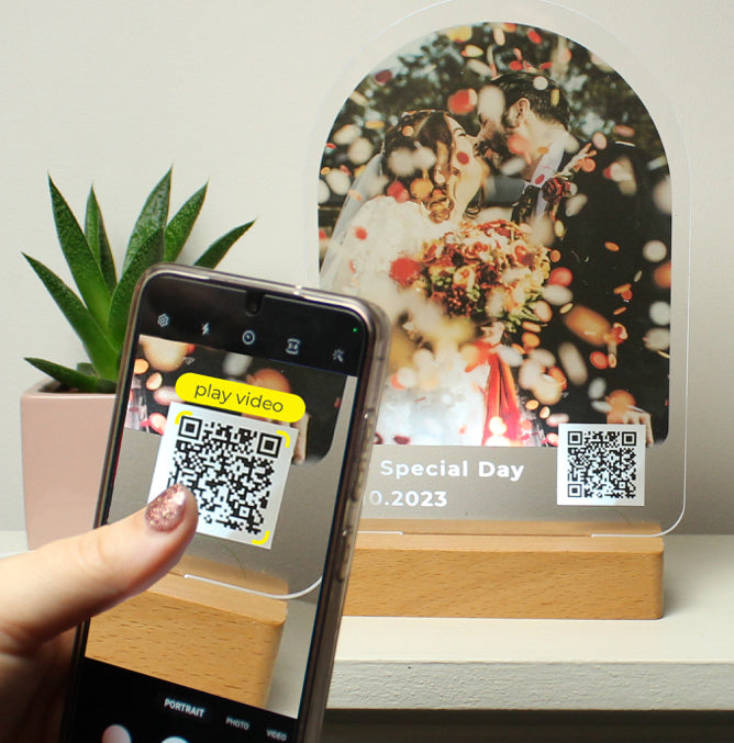 We then turn your link into a QR code and add it to the LED light meaning your special message or moment is always available at the click of a button!