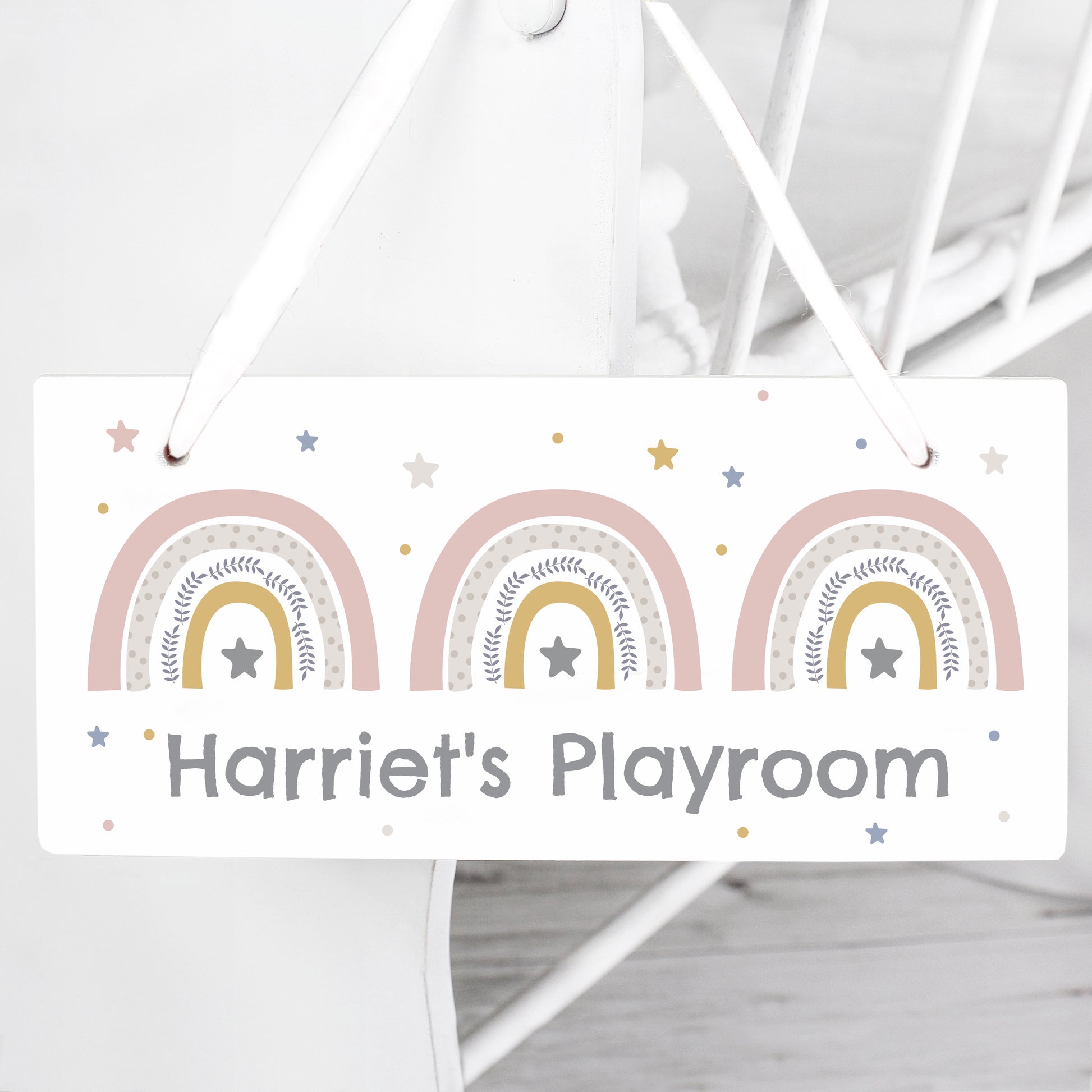 This fabulous personalised Rainbow Wooden Sign will look great on a bedroom door, or proudly displayed around the home.
