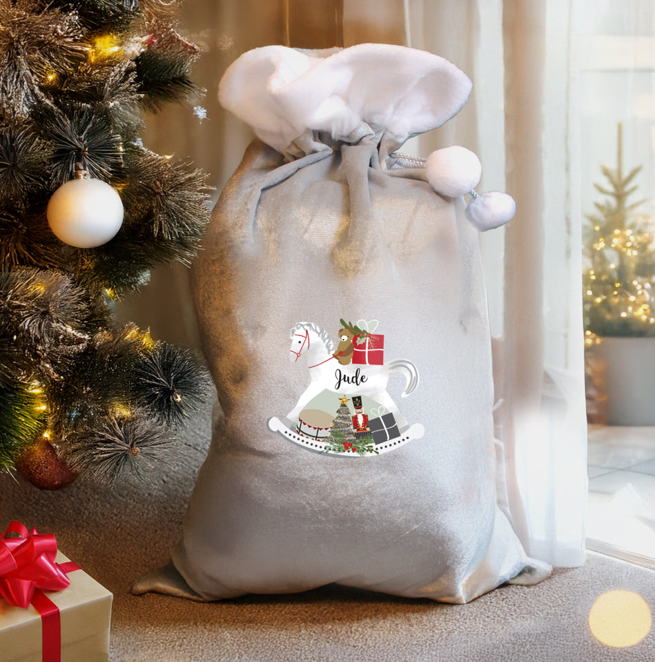 Our Grey Rocking Horse Christmas Luxury Sack is a great way to present their Christmas treats from Santa.