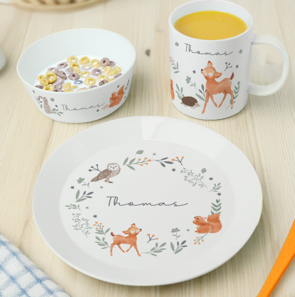 Personalise this cute plastic breakfast set with a name up to 12 characters.