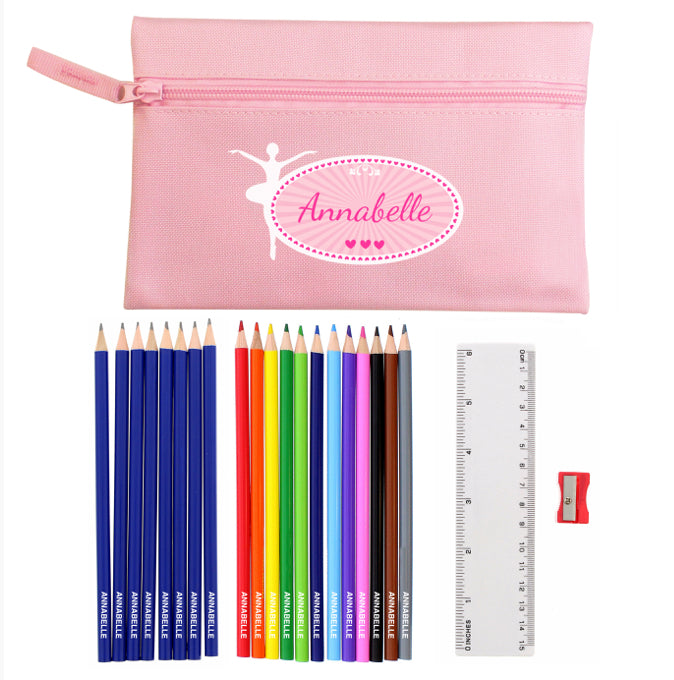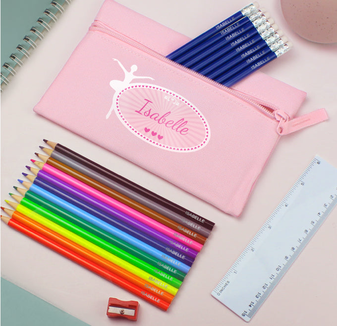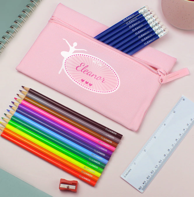Pink Ballerina Pencil Case with Personalised Pencils & Crayons