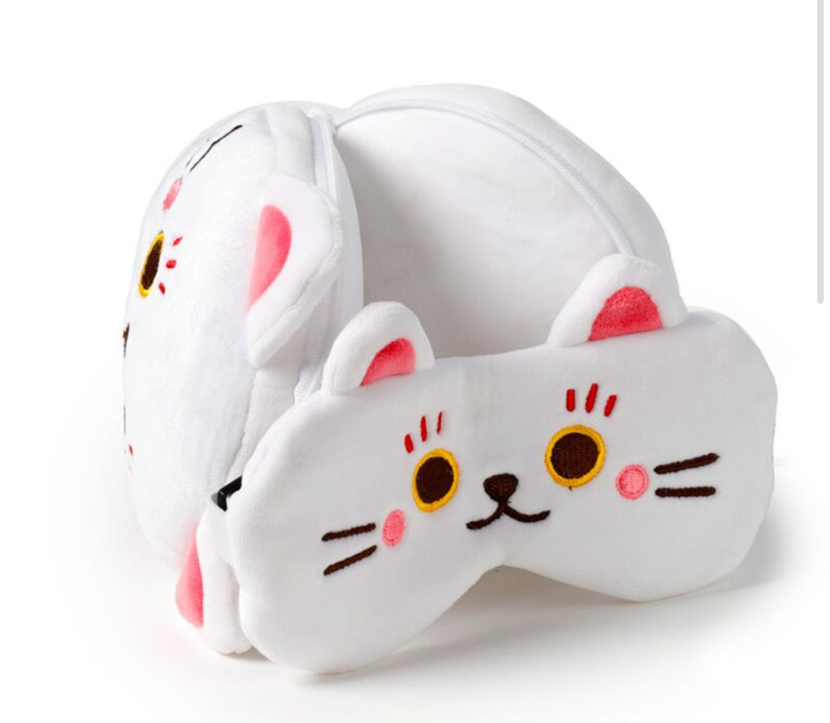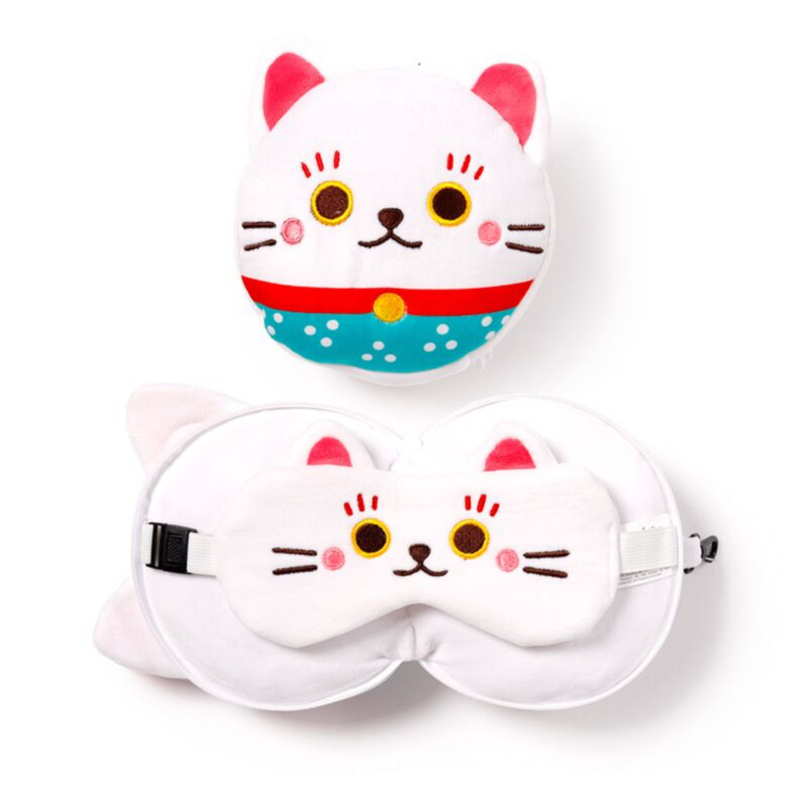 Relaxeazzz Travel Pillow & Eye Mask - Maneki Neko Lucky Cat