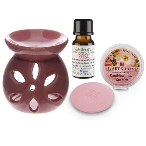 This beautiful ceramic oil burner is painted pink and glazed to give it a wonderful looking sheen, along with a floral pattern cut out of the centre which creates a wonderful effect when the flickering candle light escapes through these cut-out holes. also includes a 10ml bottle of our full-strength Rose Fragrance Oil and a Rose Wax Melt making it an amazing value and wonderful gift idea for someone who is a lover of burning oils.