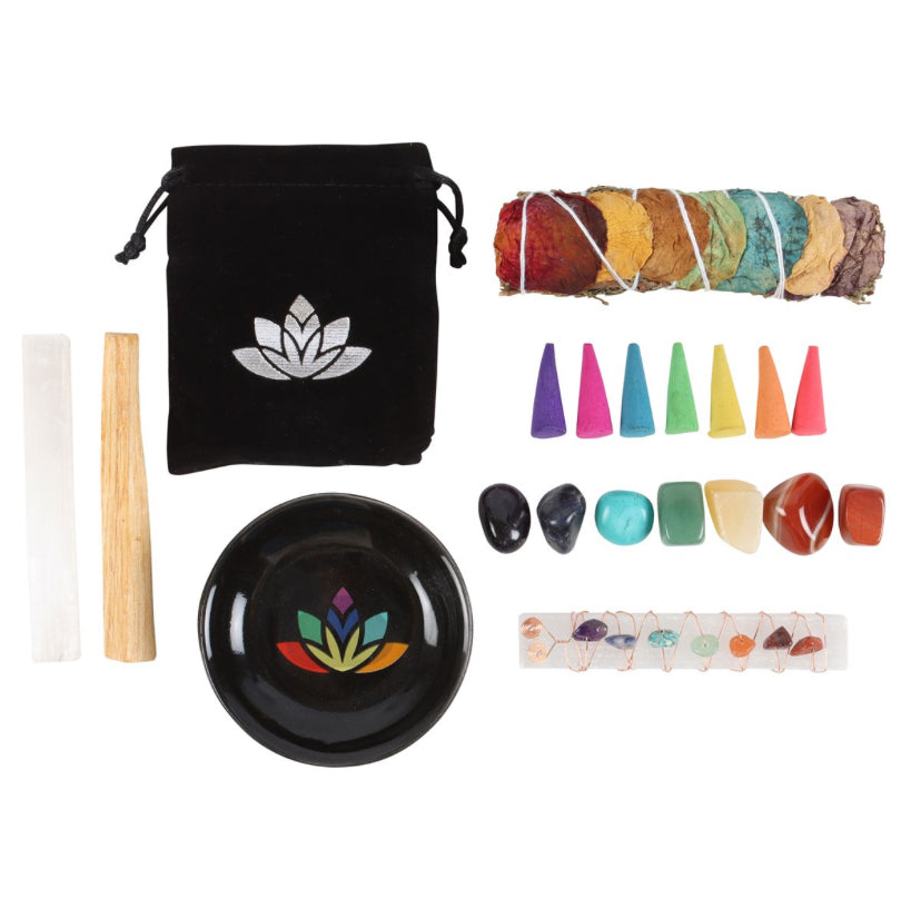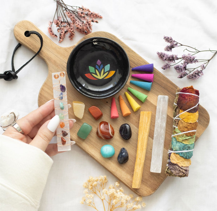 This Sacred Chakra Deluxe Healing & Wellness Kit includes everything needed to realign the body's energy centres.