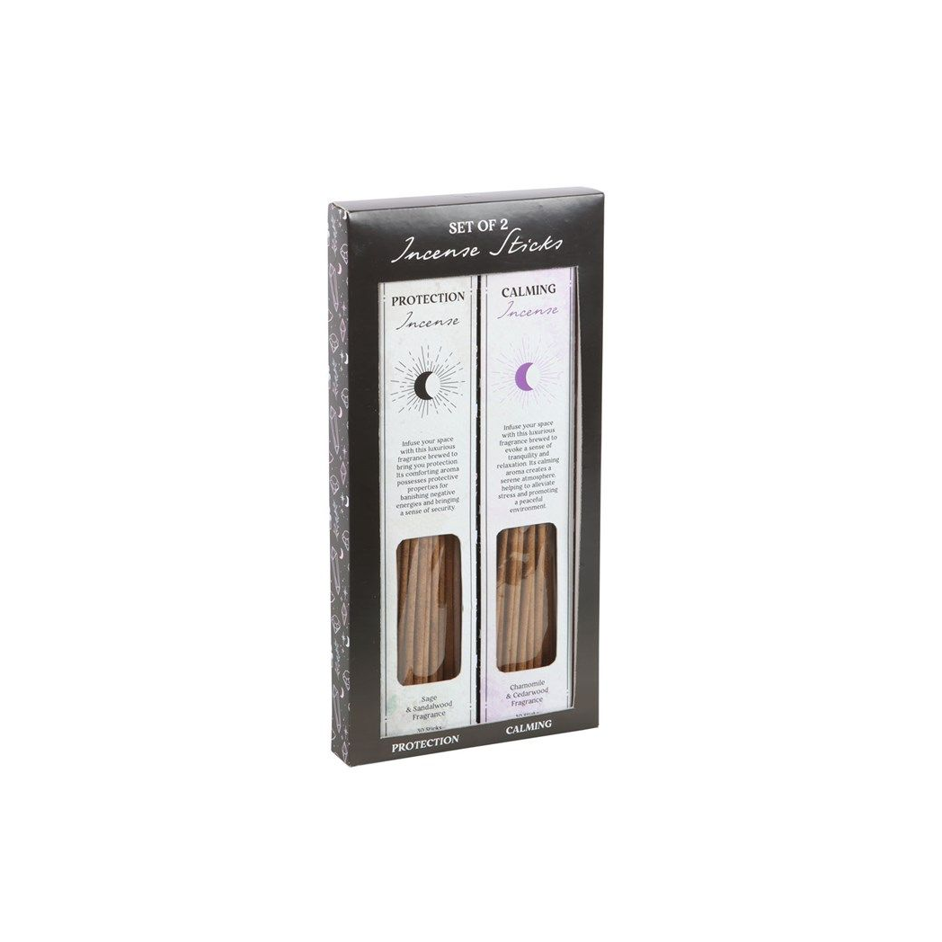 Infuse any space with calming and protective energy with this pack of 2 incense sticks sets. The calming chamomile and cedarwood fragrance is ideal for relieving stress and promoting a peaceful environment, while the sage and sandalwood fragrance possesses protective properties for bringing a sense of security. A perfect gift for lovers of all things mystical.