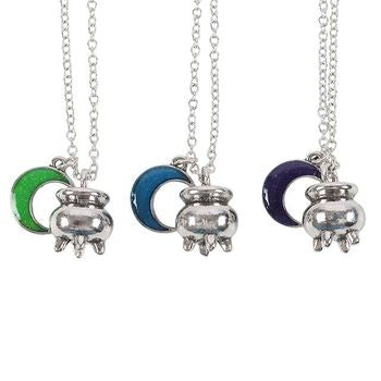Celebrate sisterhood and sorcery with this enchanting set of 3 cauldron charm necklaces, each featuring a crescent moon in a different mystical shade - blue, purple, and green. Perfect for sharing with your coven or gifting to fellow spellcasters, each necklace comes presented in themed packaging with a magical poem.