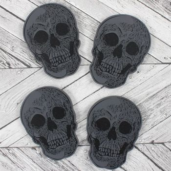 Protect your prized furniture in style with this set of four skull coasters. Made from MDF with a printed surface, the coasters can easily be wiped clean.