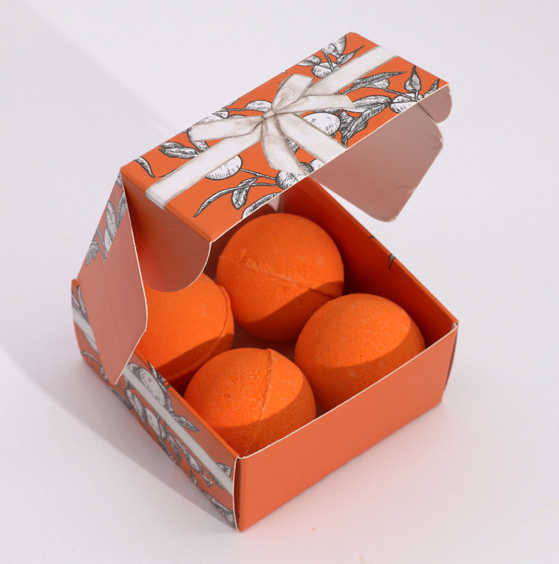 Each set of four bath bombs is beautifully packaged in an eye-catching box. This not only protects the product but also makes it a perfect gift item