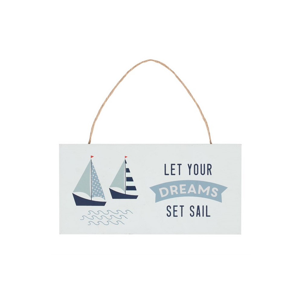Enhance a nautical inspired decor with this hanging 'Let Your Dreams Set Sail' sign. Product Dimensions: H20cm x W20cm x D0.8cm Packaged Dimensions: H10cm x W20cm x D0.8cm