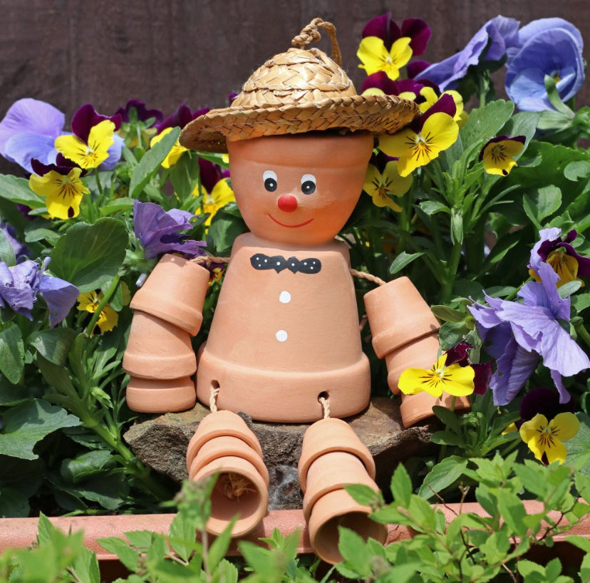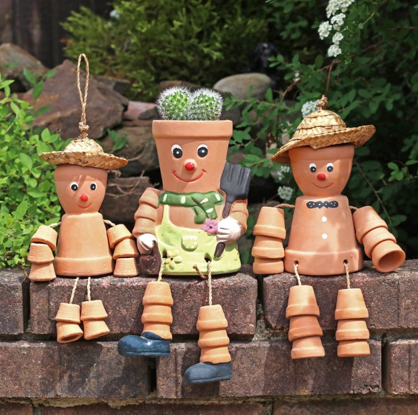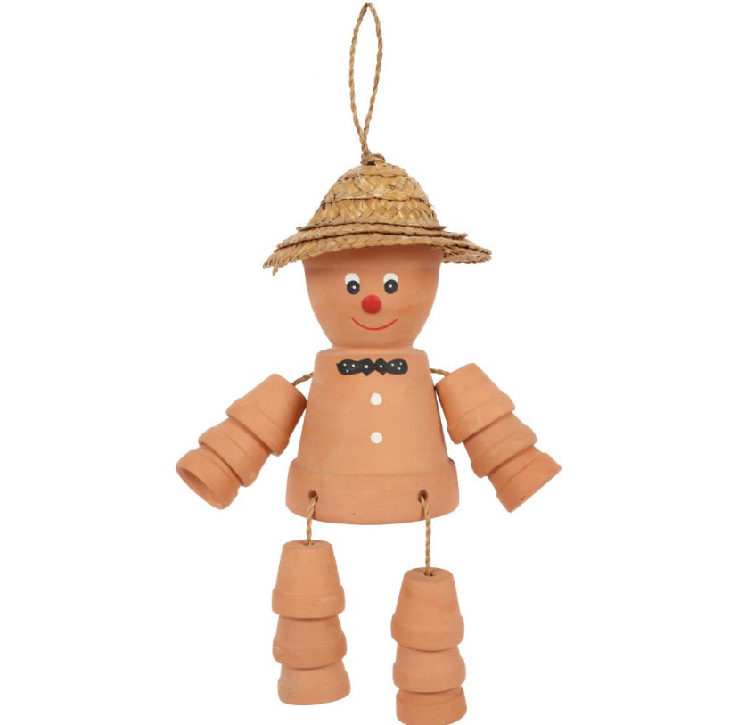 A fun terracotta pot man is just what you need to brighten up your garden this season. This happy chap can be perched on garden walls, shelves, and ledges or hung up by his attached string to dangle in the breeze.