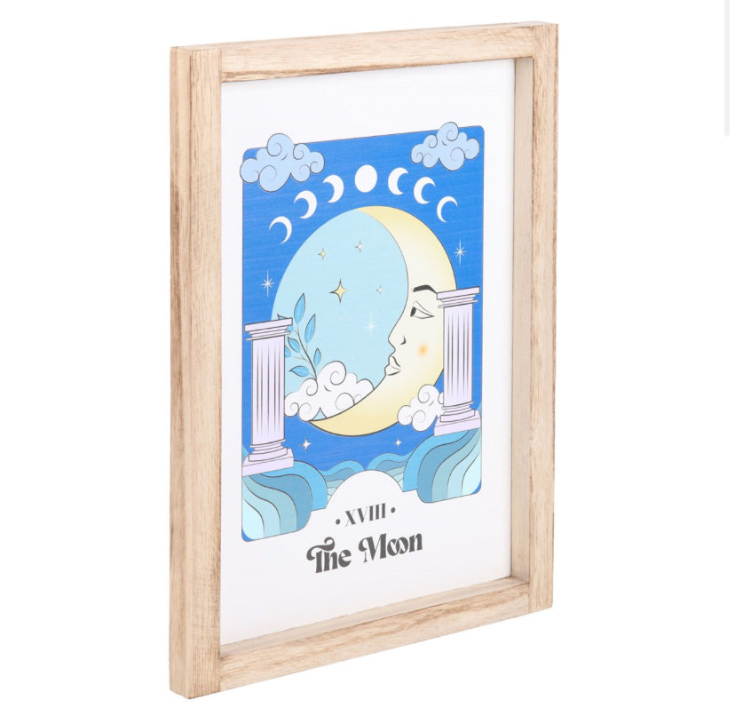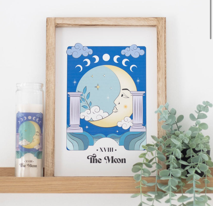 This framed art print showcasing 'The Moon' brings a touch of celestial magic to any trendsetter's space, blending mystical vibes with a calming color palette. The serene illustration invites calm, ideal for creating a tranquil corner in the home a bustling young adult's life.