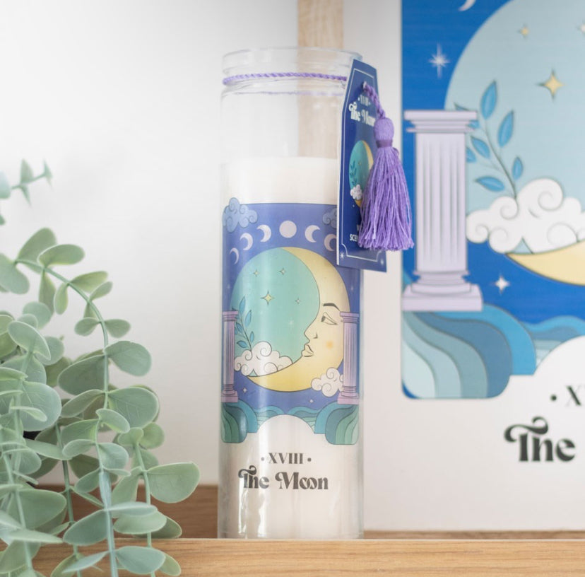 This violet scented tube candle is a beautiful addition to anyone's room, casting a warm glow while filling the space with a calming floral fragrance. Featuring the magical design of 'The Moon' tarot card, it's perfect for unwinding after a long day or setting the mood for manifesting dreams. Its celestial look is sure to be a hit on social media feeds, resonating with the aesthetics of teens and young adults alike.