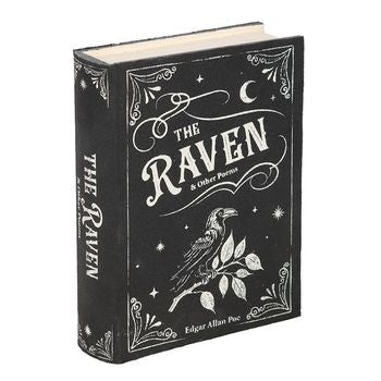 Store your treasures in this book-shaped storage box inspired by Edgar Allan Poe's "The Raven." A perfect gothic touch for bookshelves or as a secret keepsake holder.