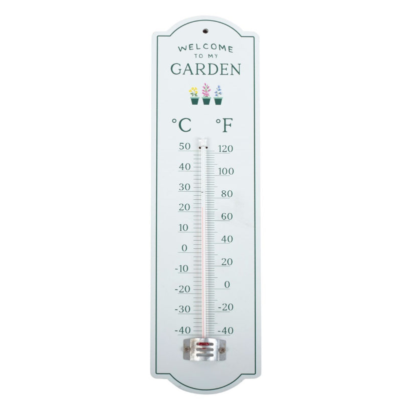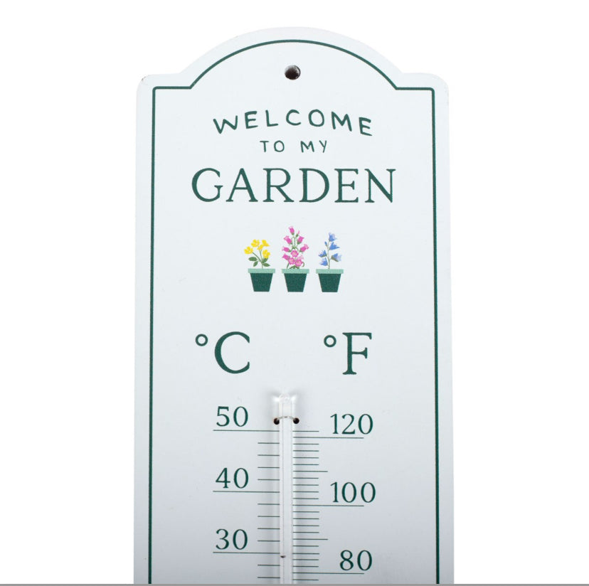 Keep track of the temperature so your garden plants can thrive with this sweet wall thermometer with 'Welcome to my garden' text.