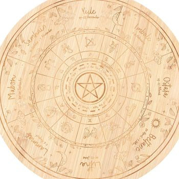 Bring a seasonal touch to gatherings and ritual feasts with this wooden serving board engraved with the Wheel of the Year. Featuring symbols for all eight sabbats, it's both a functional kitchen piece and a meaningful spiritual accent. Hand wash only. Do not soak.
