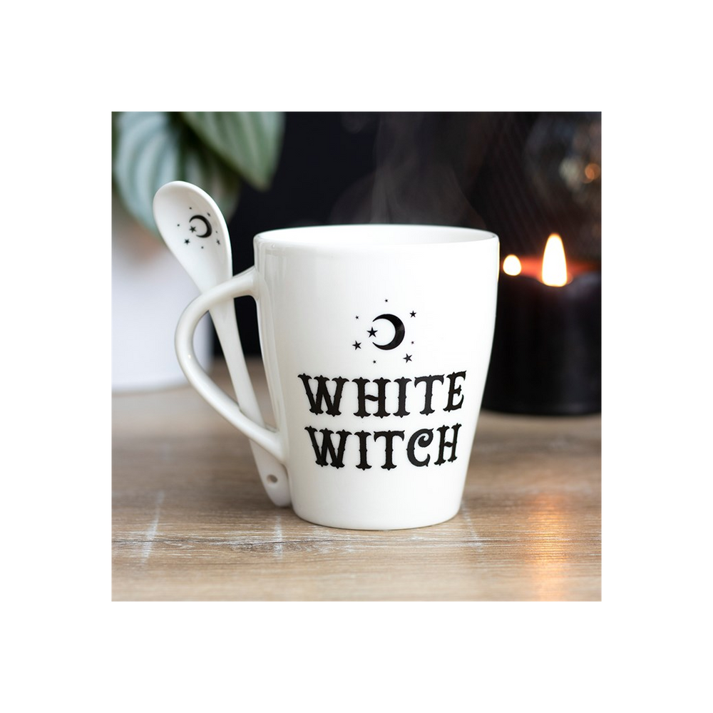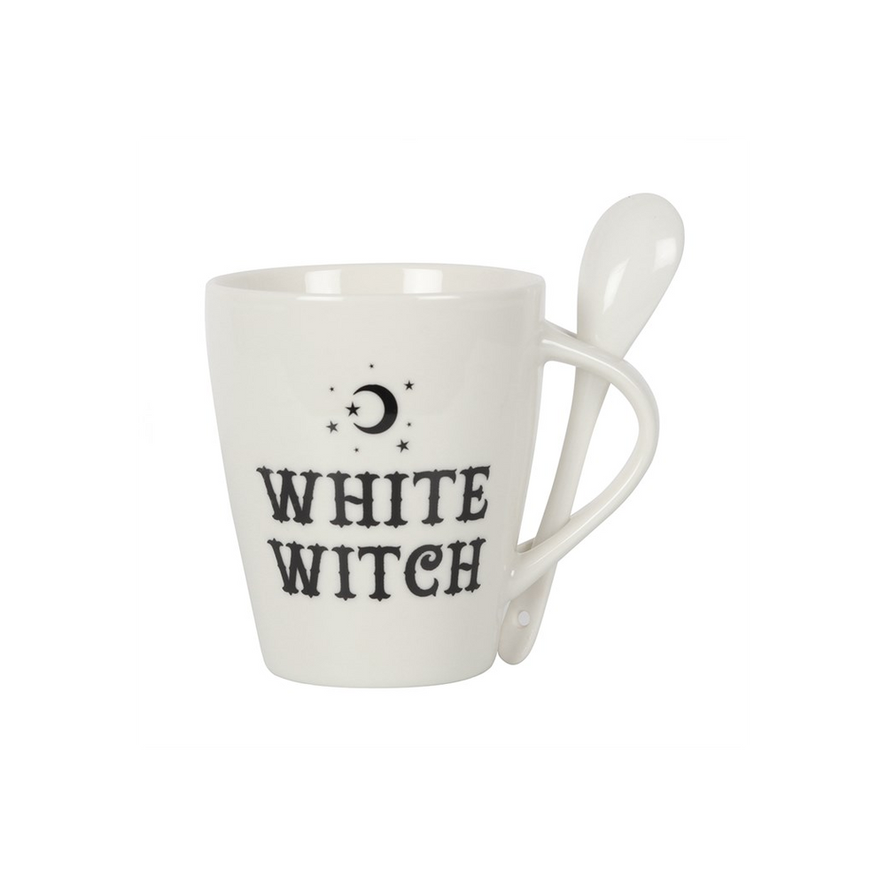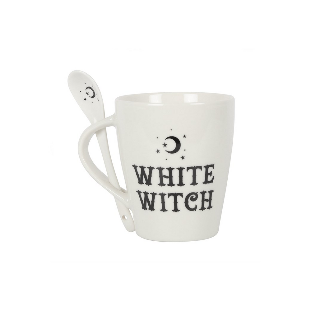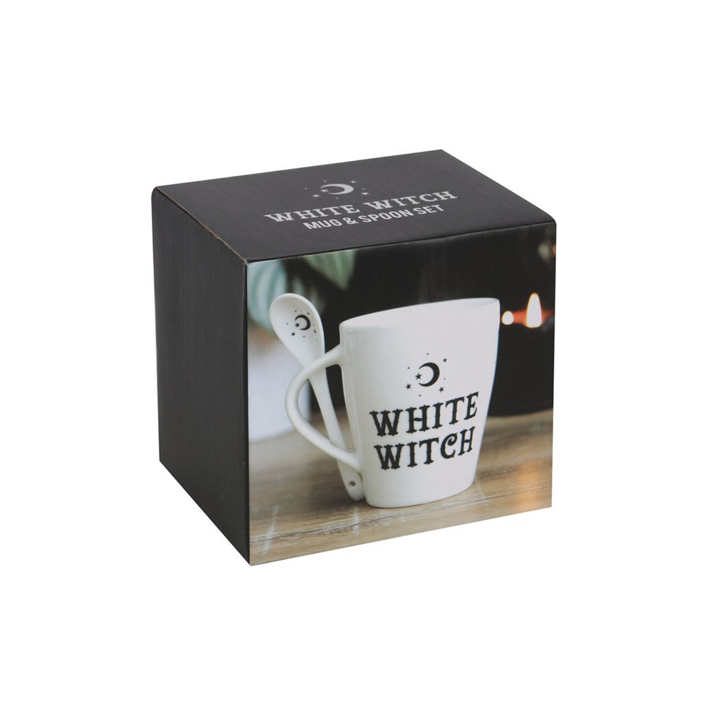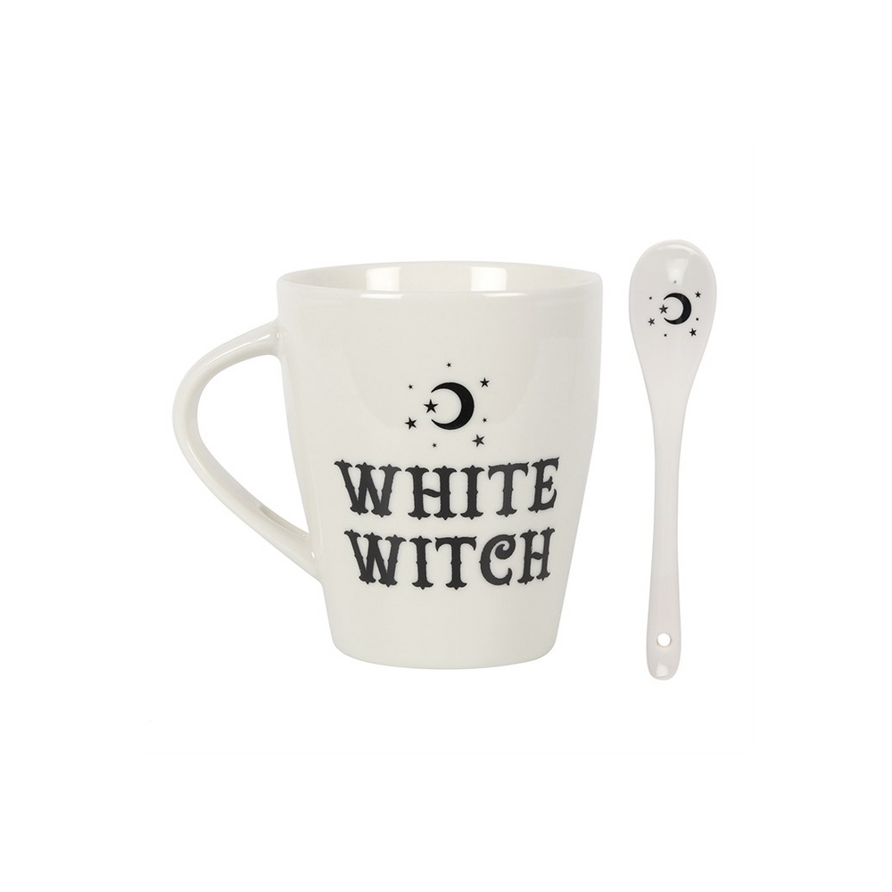 This bewitching mug and spoon set will add a pinch of magic to every cuppa. Style features 'White Witch' text and matching teaspoon with a mystical moon and star design that fits perfectly in a slotted handle. 500ml capacity. Product Dimensions: H10cm x W11.5cm x D8.5cm Packaged Dimensions: H10.5cm x W11cm x D9cm