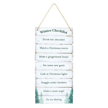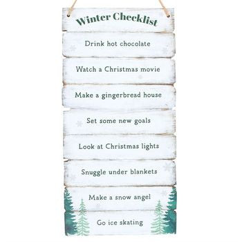 Tick off every cosy winter tradition with this Winter Wonderland Checklist hanging sign. Featuring a charming list of seasonal activities, this decorative piece is perfect for adding festive fun to the home. A great addition to Christmas décor or as a thoughtful gift for winter enthusiasts.