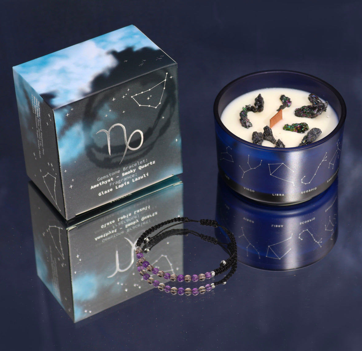 This elegant pairing of candle and bracelet is ideal for self-reflection, focus, or as a meaningful gift for a Capricorn.